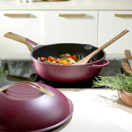 Inclus : 2 poignées détachables (une longue et une courte), un panier vapeur et une spatule en bois.