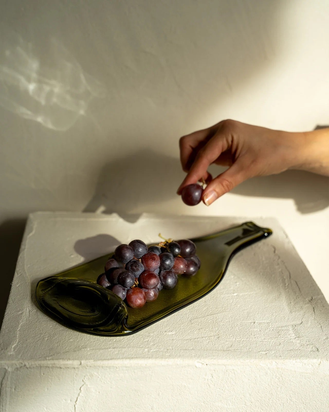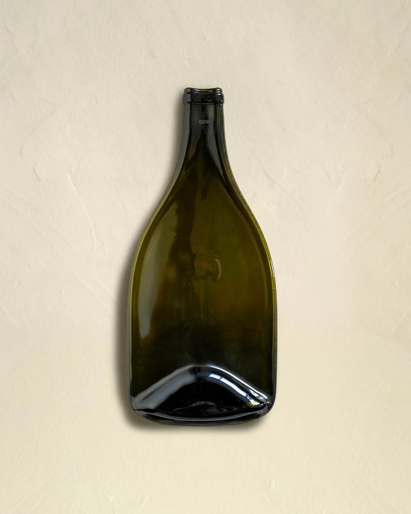 Chaque pièce est unique , née d'une bouteille collectée puis thermo-formée par une cuisson dans notre four. Ce procédé artisanal et Made in France donne une nouvelle vie au verre.