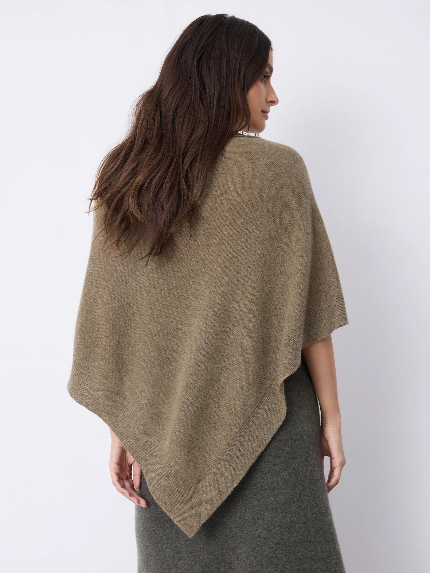 Cape TU pour femme à encolure roulottée avec finitions en bords-côtes, confectionnée en cachemire 2 fils jauge 12, 100 % cachemire, d’une longueur de 58 cm pour la taille unique.