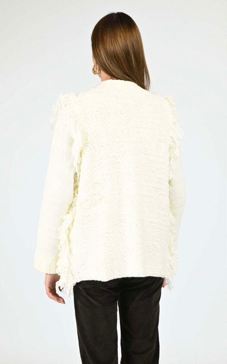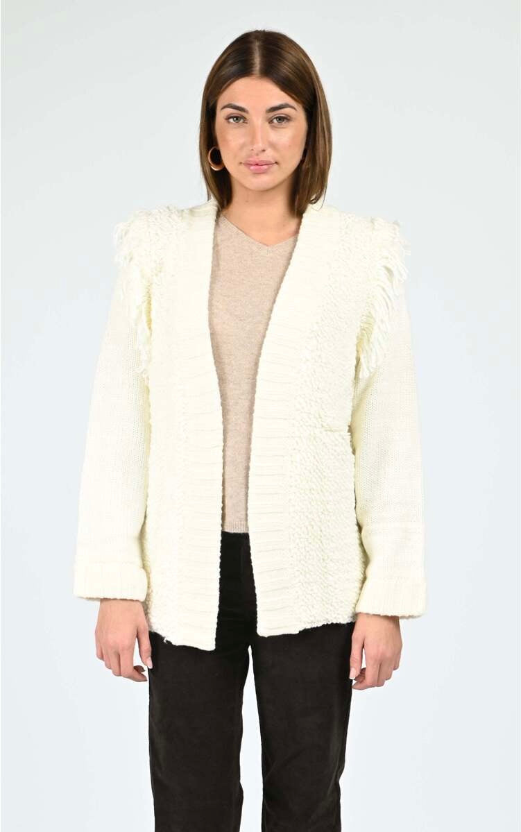 Découvrez le gilet cosy en laine modèle Adrien de la marque Notshy, une pièce douce et confortable au style décontracté, dotée d’un col châle et de poignets en bords-côtes, d’empiècements bouclettes à l’avant et au dos ainsi que de franges latérales, offrant une chaleur optimale, une coupe fluide facile à porter et un esprit moderne et cocooning, confectionnée en 80 % acrylique et 20 % laine.